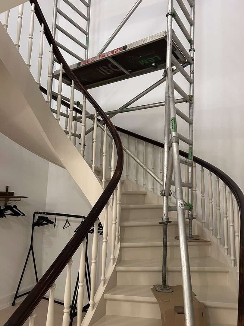 Kræver din opgave at stilladset bygges op på en trappe eller trappeskakt, så tilbyder vi også sådan løsning. Send gerne et par billeder hvor stilladset skal bygges op, så kommer vi med et tilbud. Kontakt os for at høre mere.
